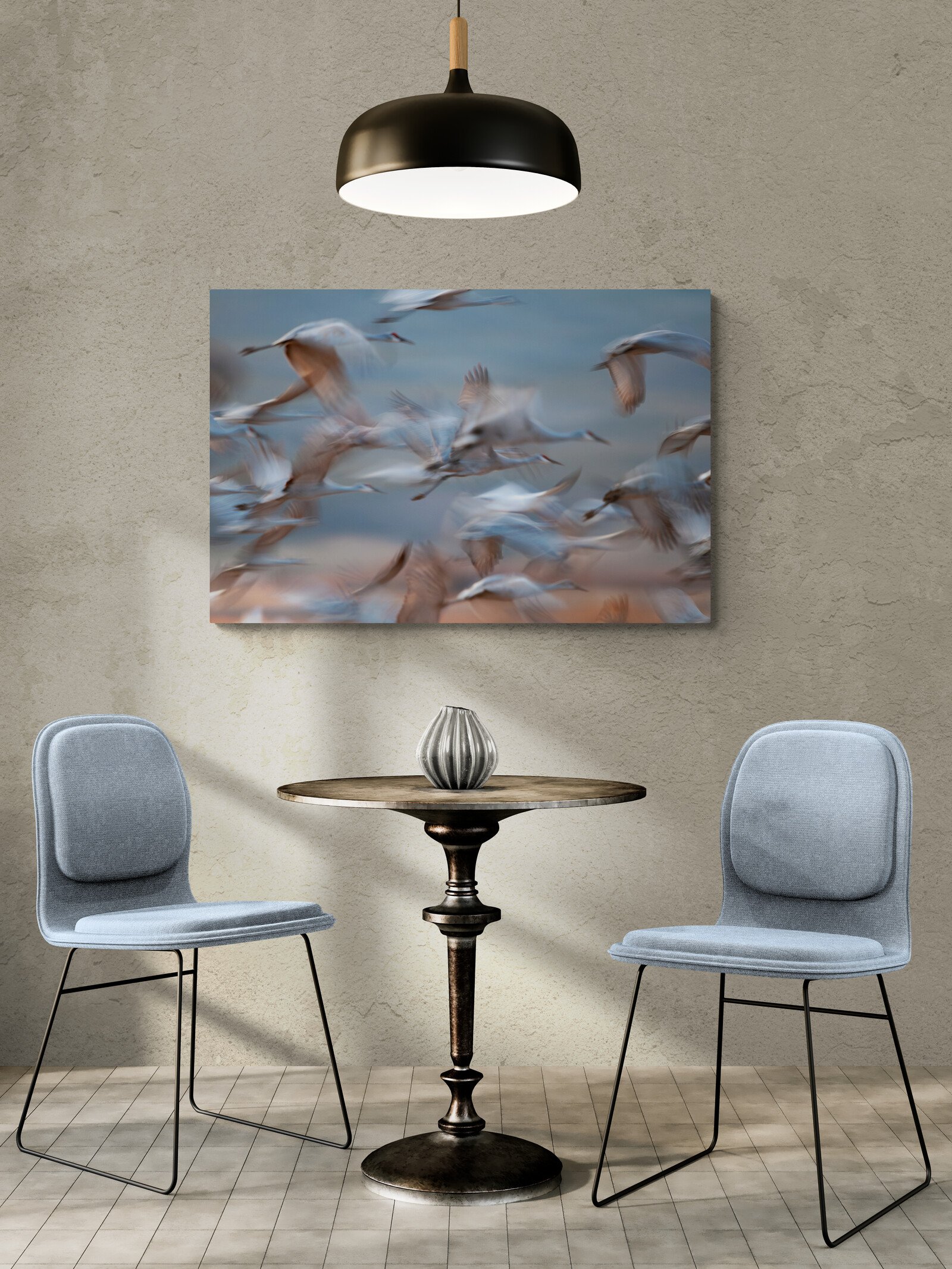 As I was observing them one late afternoon, taking some photographs and trying to make sense of the sheer size of the flock, they suddenly took flight seemingly all at once. Their movements became a ballet in the sky; with wings outstretched, they soared in graceful arcs, their forms cutting through the air. Instead of capturing the typical frozen motion with super-high shutter speeds, I decided to take a different approach. I spun the dial back to a daringly slow speed, and with this was able to capture motion for that fraction of a second. In this slow motion scene, their movements are imbued with a sense of grace and beauty. After a brief moment, I simply paused to watch them all take off. With each beat of their wings, they vanished into the distant sky, leaving behind a sense of wonder and enchantment. And though the moment may be fleeting, the memory of their dance will linger.